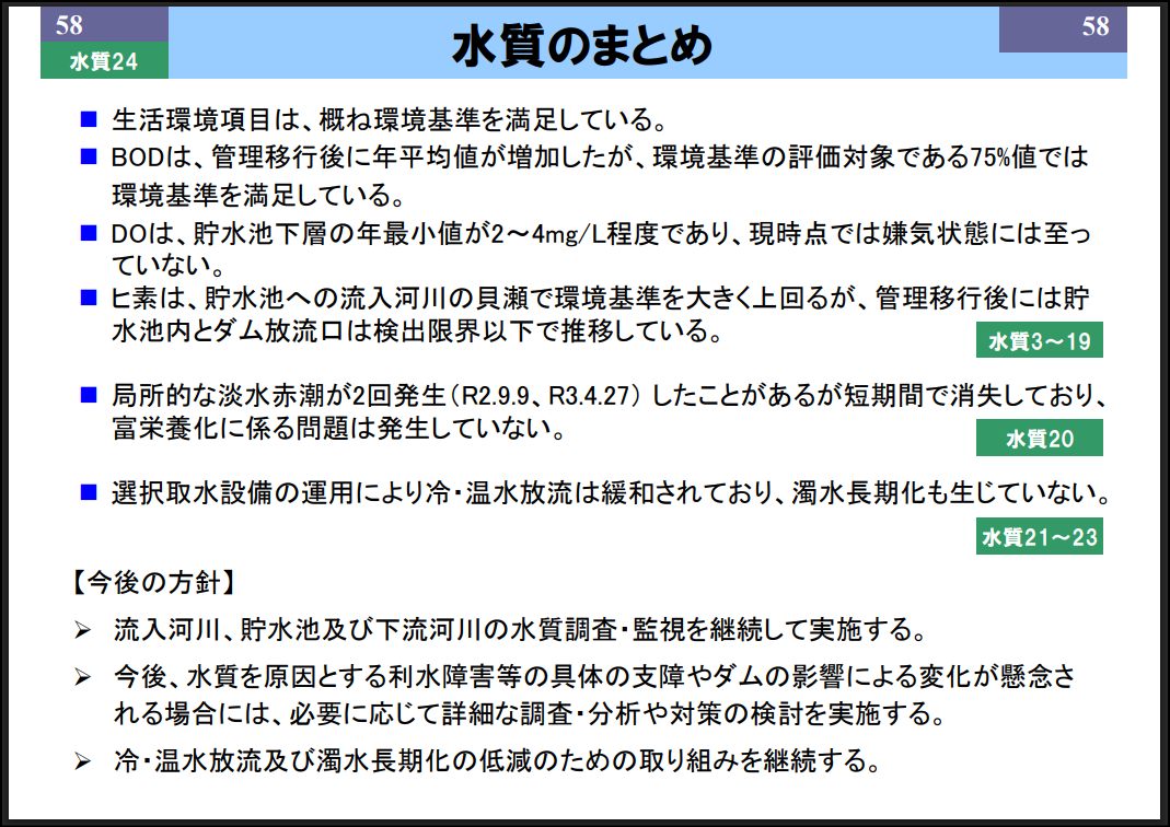 八ッ場ダムの貯水池における水質は、下流の河川環境に影響を与えるだけでなく、ダム湖観光を地域振興策として掲げる地元にとって非常に大きな意味を持ちます。