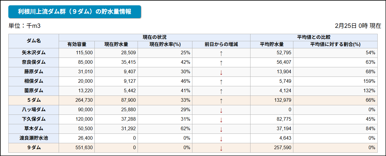 この冬は、日本海側で災害級の豪雪がある一方で、太平洋側は極端な少雨に悩まされてきました。十分すぎるほどの余剰水源がある利根川水系では問題とはなっていませんが、全国各地からダム湖の貯水位低下と渇水のニュースが発信されています。