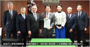 ー倉渕ダム事業再開要望 高崎市議長ら、国交相に意見書ー